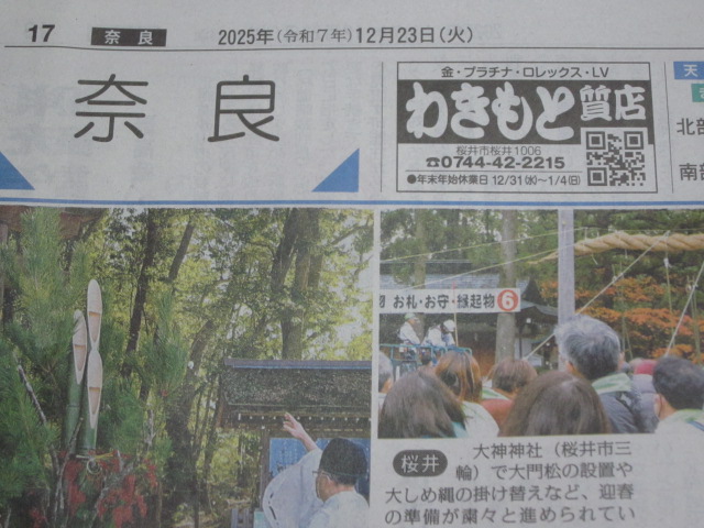 2025.12.23 新聞広告でお世話になっております。 わきもと質店の営業時間は 平日 朝9時から夜7時(電話と査定業務ははPM6時まで) 土曜日のみ 朝9時から夕方5時閉店 定休日は日曜日 祝祭日です。