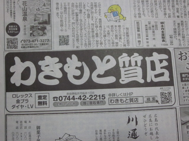 2026.01.22 新聞広告でお世話になっております。 わきもと質店の営業時間は 平日 朝9時から夜7時(電話と査定業務ははPM6時まで) 土曜日のみ 朝9時から夕方5時閉店 定休日は日曜日 祝祭日です。
