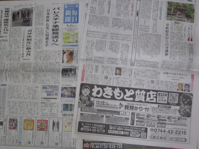 9月18日の毎日新聞5段広告持参で新規質契約時 少し安い利息で契約キャンペーン 9月19日夕方4時まで