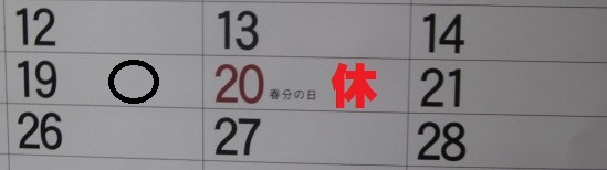 20日(春分の日)は定休日 金曜日は朝9時~夜7時営業です。